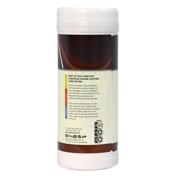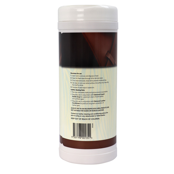 For deep cleaning, conditioning and long-term care of leather saddlery gear, use wipes in conjunction with Oakwood Leather Cleaners and Leather Conditioning Creams.