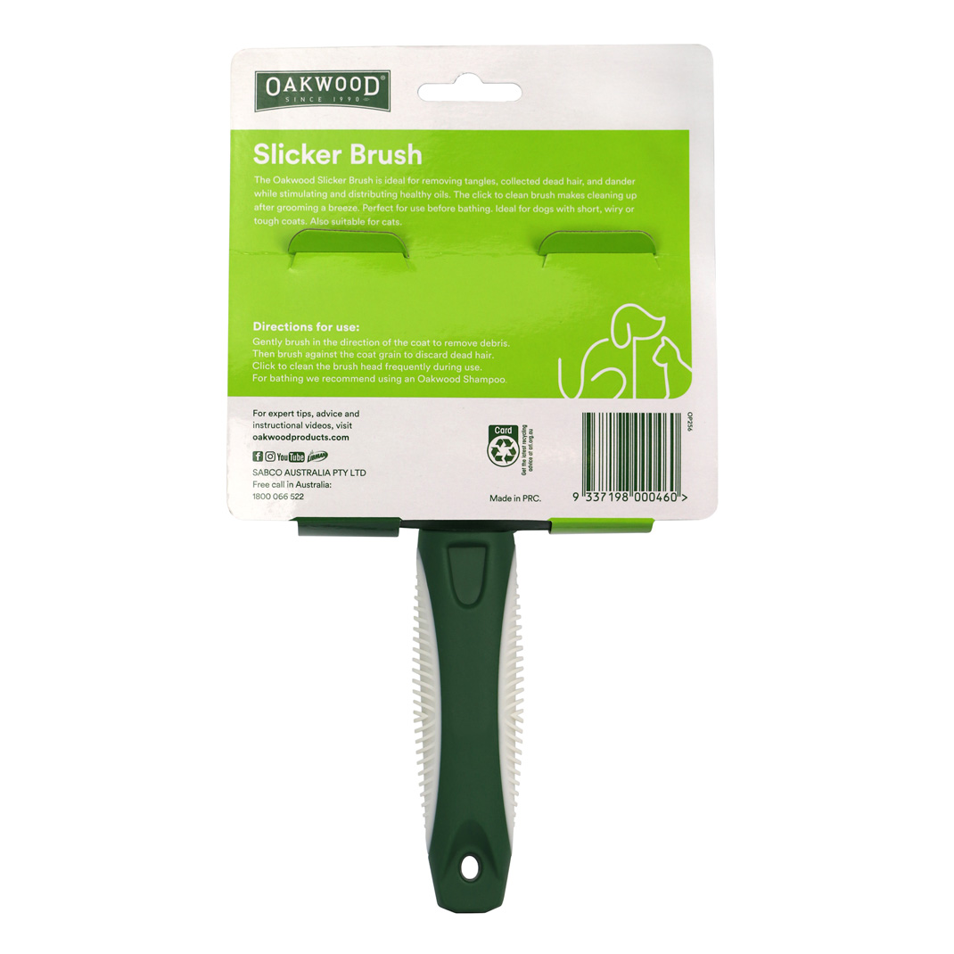 Oakwood’s detangling Slicker Brush is ideal for removing tangles, collected dead hair and dander while stimulating and distributing healthy oils.