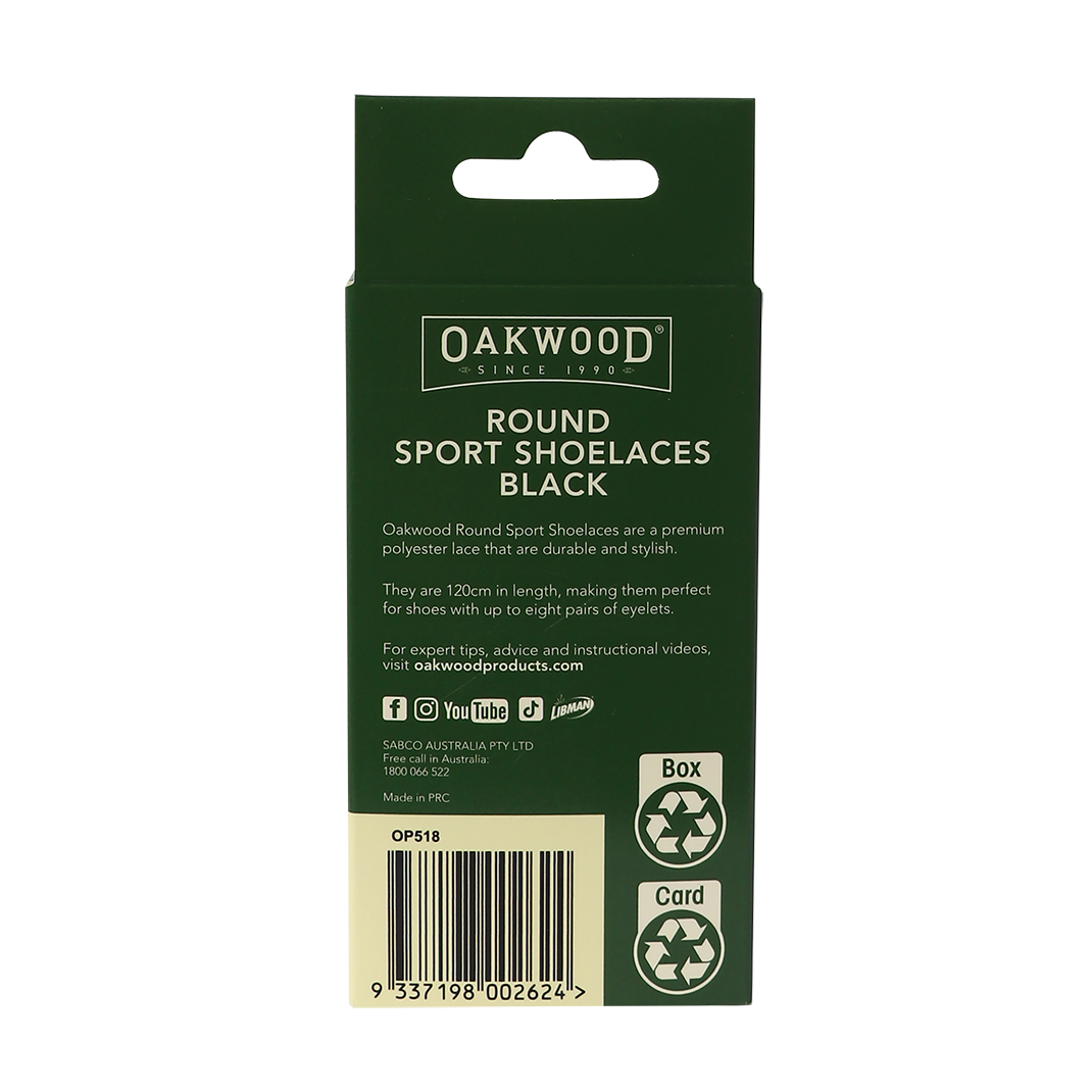 Oakwood Round Sport Shoelaces are a premium polyester lace that are durable and stylish. They are 120cm in length, making them perfect for shoes with up to eight pairs of eyelets.
